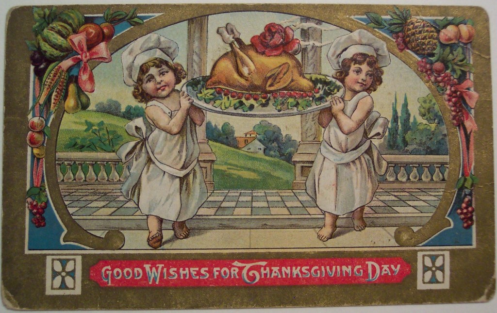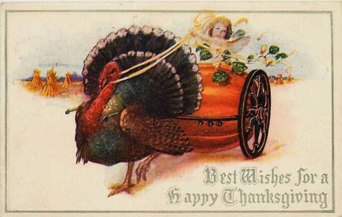 And at least some of the naked children have wings. Cherubs murder turkeys in their spare time, when not posing for Renaissance painters, of course. Thaksgiving is truly weirder than I thought