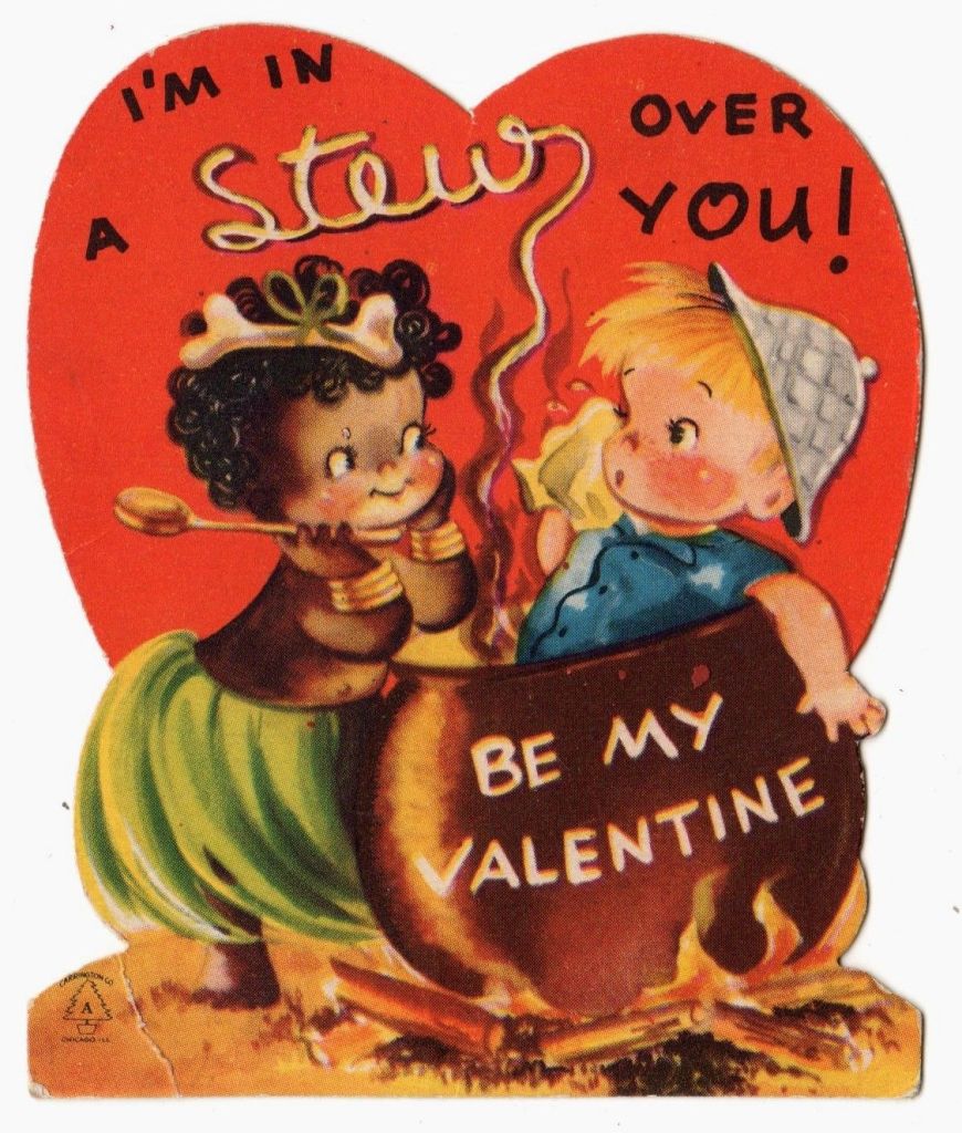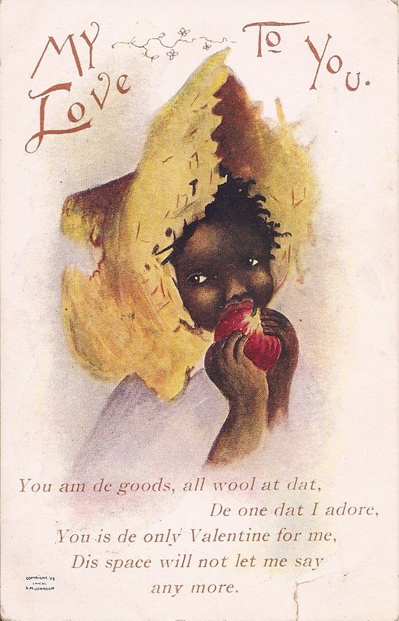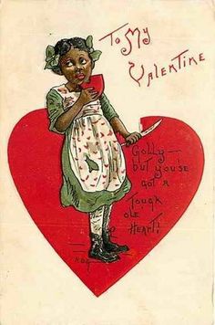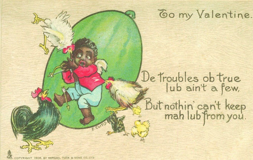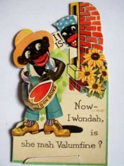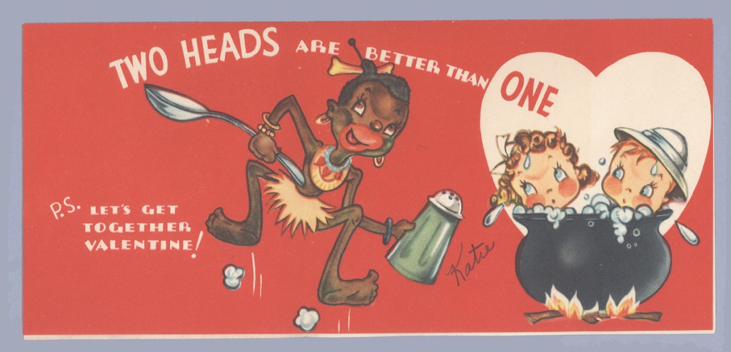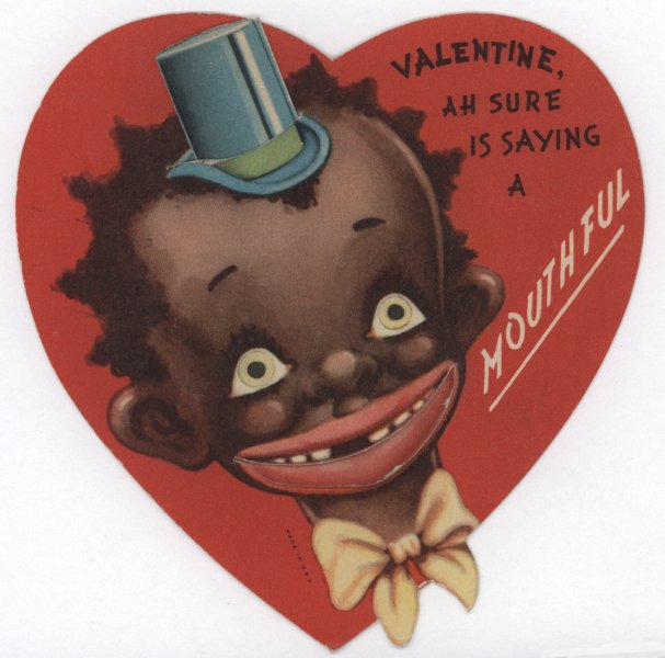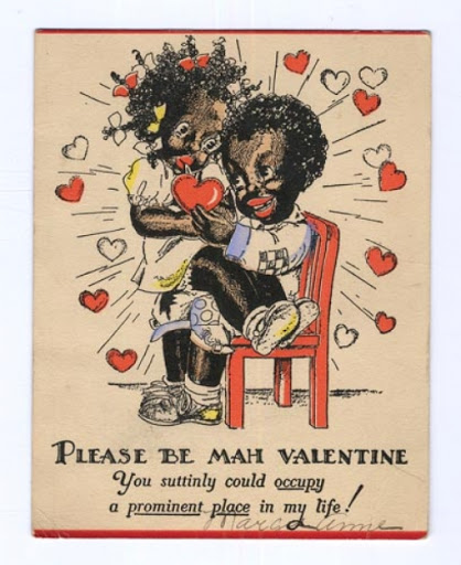 Of all the holidays, old Valentine cards have the most racist images I’ve found by far. A lot of people have stumbled onto them this year and sent them to me. Most are things I’ve seen before, but kudos to those of you who found even more evil than I’d dredged up on my own! You obviously travel worse internet hideouts than I do.