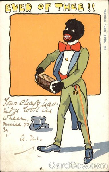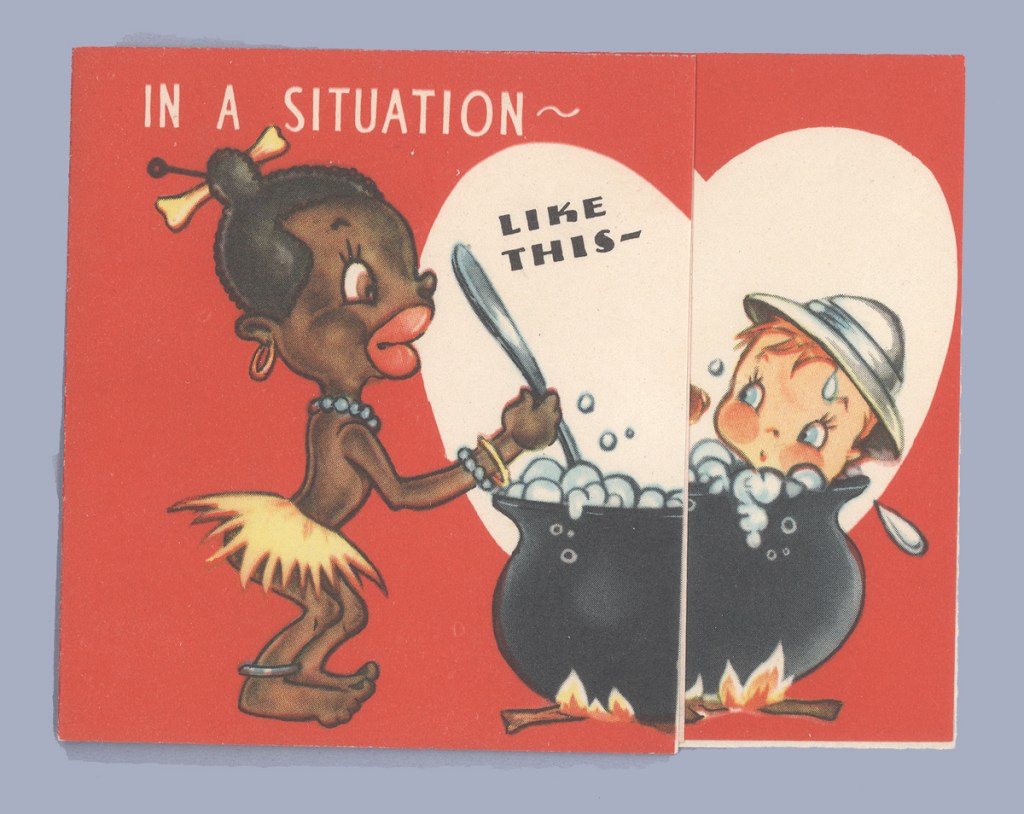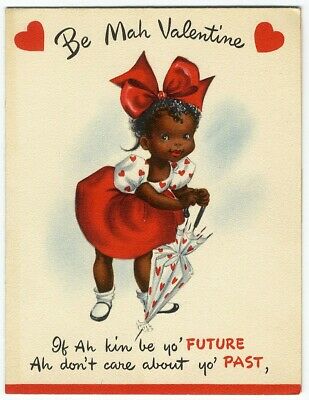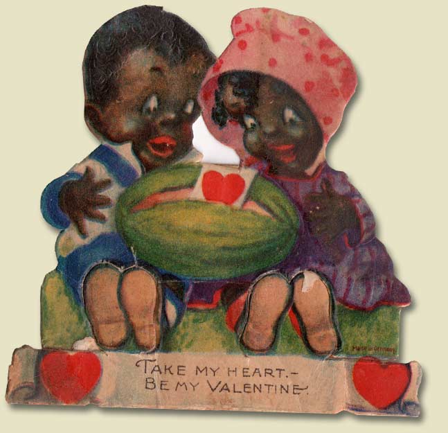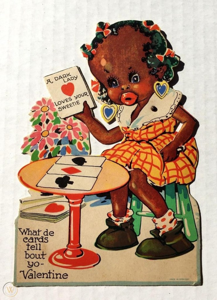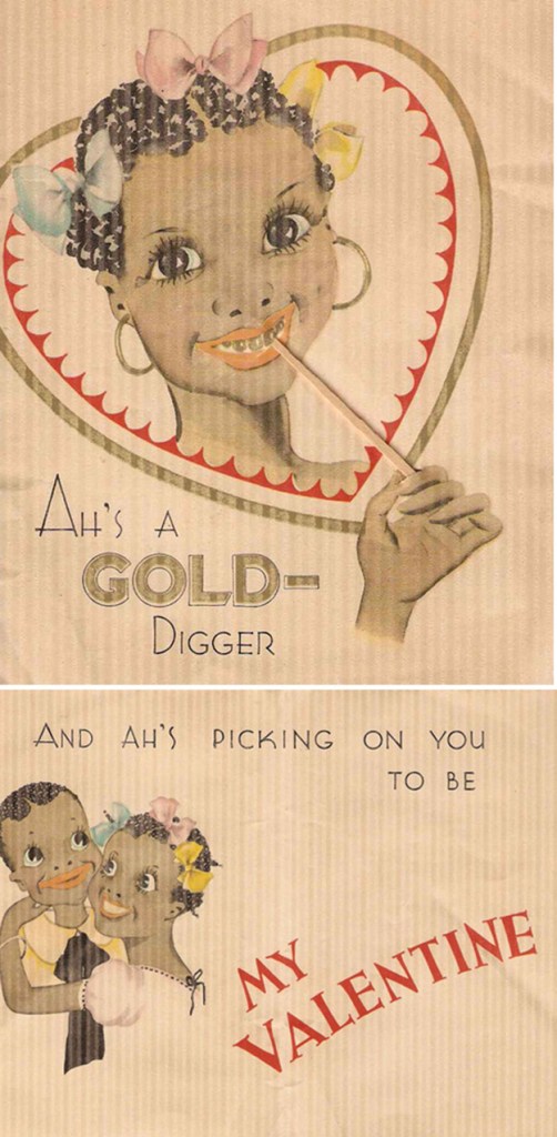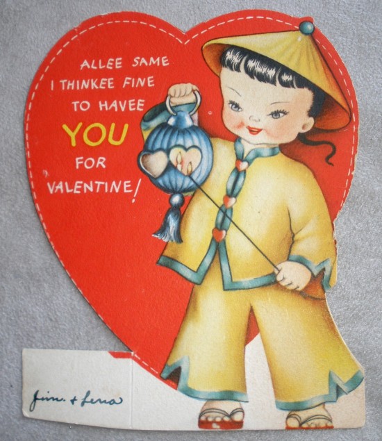 Of all the holidays, old Valentine cards have the most racist images I’ve found by far. A lot of people have stumbled onto them this year and sent them to me. Most are things I’ve seen before, but kudos to those of you who found even more evil than I’d dredged up on my own! You obviously travel worse internet hideouts than I do.