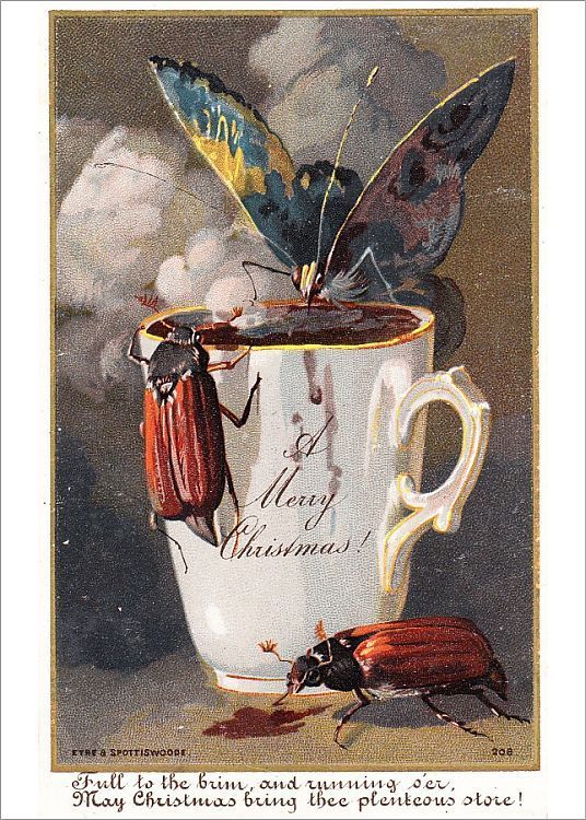 lowered its mandibles to drink the smoking bishop. A large rainbow-coloured butterfly